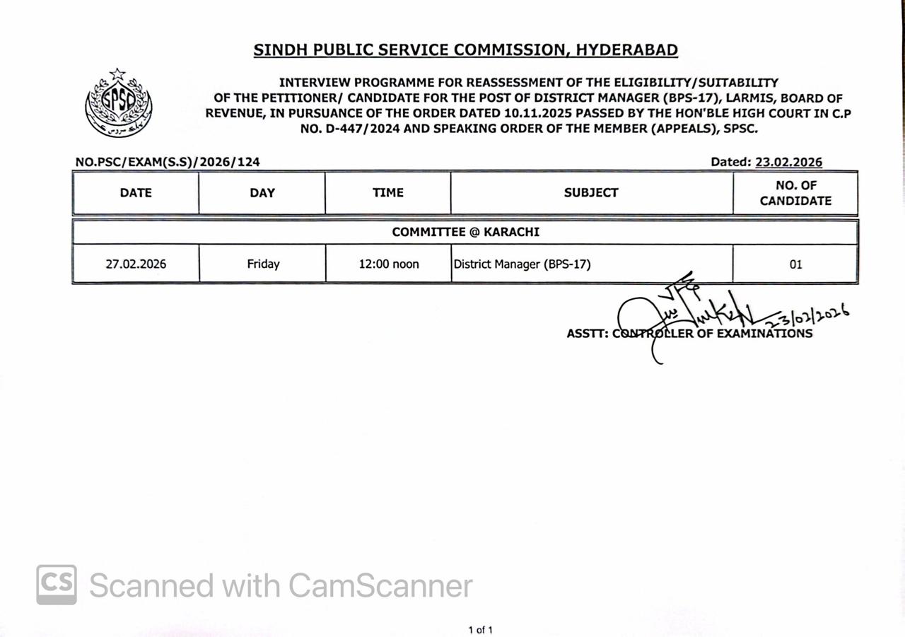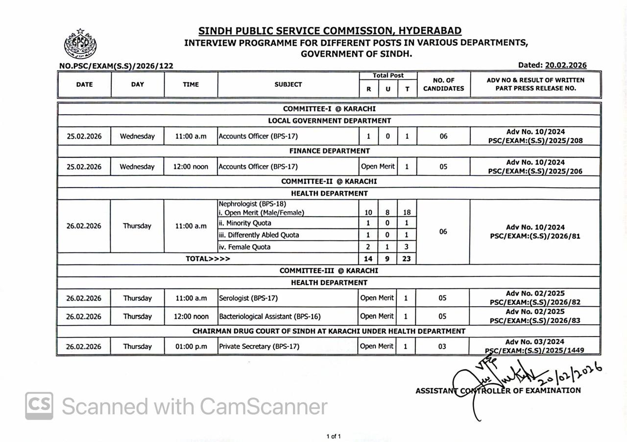 Assistant BPS-16 & Statistical Officer BPS-17 in Sindh Public Service Commission.