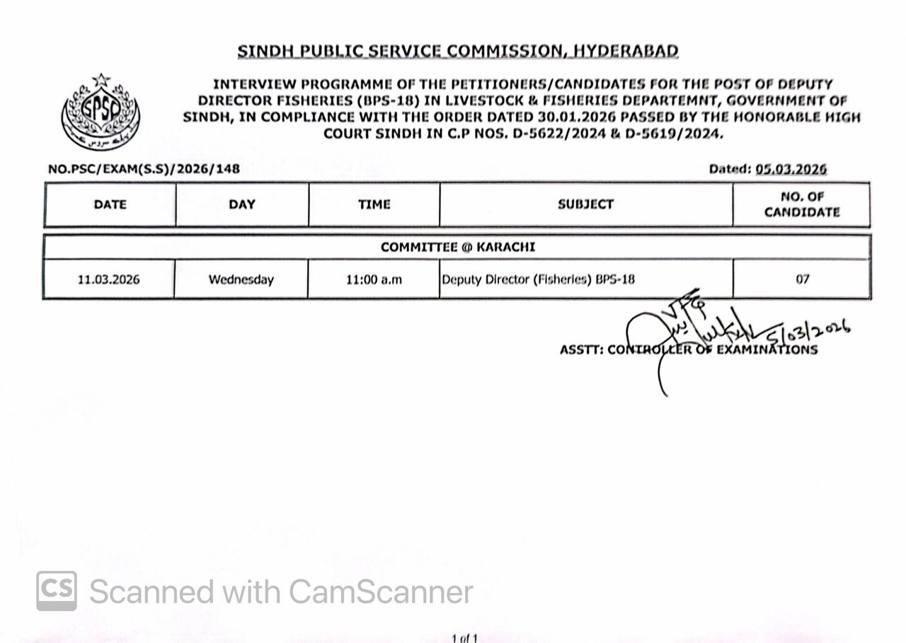 Assistant Director Fisheries (BPS-17) in Livestock & Fisheries Department.