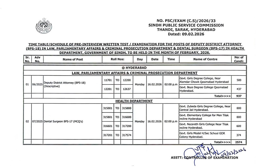 Law Officer BPS-17 and Budget & Accounts Officer BPS-16 in Sindh Public Service Commission.